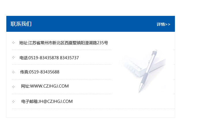 傳真:0519-83435688    郵編:213135    網址:WWW.czjhgj_com.lantiansy.com    電子郵箱:JH@czjhgj_com.lantiansy.com